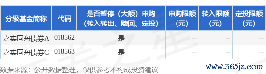 本站消息,10月27日嘉实基金管理有限公司发布《关于嘉实同舟债券2025年10月29日暂停申购、赎回、转换及定期定额投资业务的公告》。公告中提示,为2025年10月29日(星期三)港股通休市,自2025年10月29日起嘉实同舟债券2025年10月29日暂停申购、赎回、转换及定期定额投资业务,下属分级基金调整明细如下: