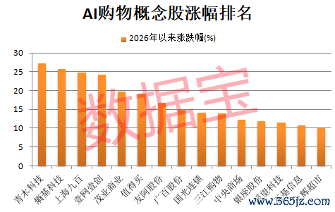 A股市场上,与AI购物题材直接相关的无疑是零售股,以及运用AI技术赋能购物的相关股票。据证券时报·数据宝统计,截至1月9日收盘,AI零售概念股今年以来平均上涨6.48%。青木科技、熵基科技、上海九百、壹网壹创4股累计涨幅超20%。